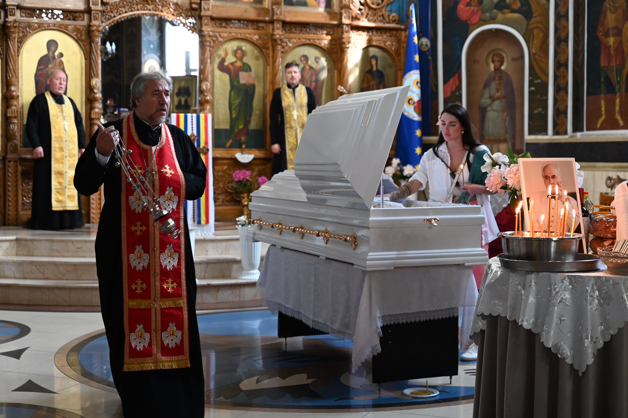 Sicriu alb, lumânări și chipuri îndurerate. Apropiații maestrului au venit la Catedrala Sfânta Teodora de la Sihla pentru a-și lua rămas bun de la marele maestru Eugen Doga, iar mâine 5 iunie va fi condus pe ultimul drum, potrivit unimedia.info